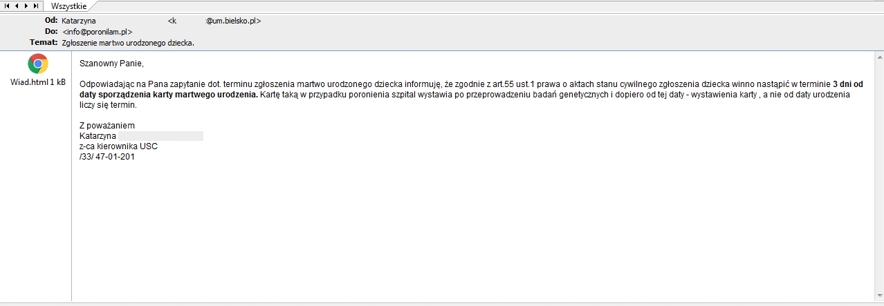 Niestety, w sieci znaleźliśmy bardzo dużo błędnych informacji o obowiązującym terminie 3 dni od daty urodzenia dziecka (czyt. poronienia). Nawet na stronie e-Urzędu informację są nieprawidłowe. Co gorsze te informacje są bardzo często powielane przez internautów.
